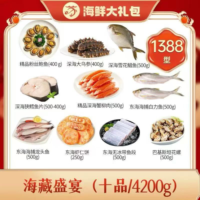 【礼券】苏霸王海鲜年货礼盒『海藏盛宴』1388型海鲜卡(10道海鲜共4200g)