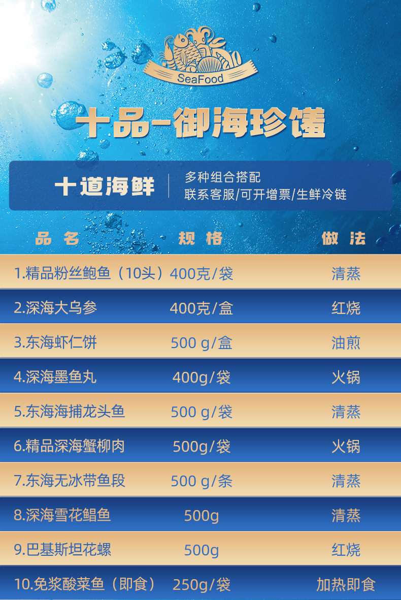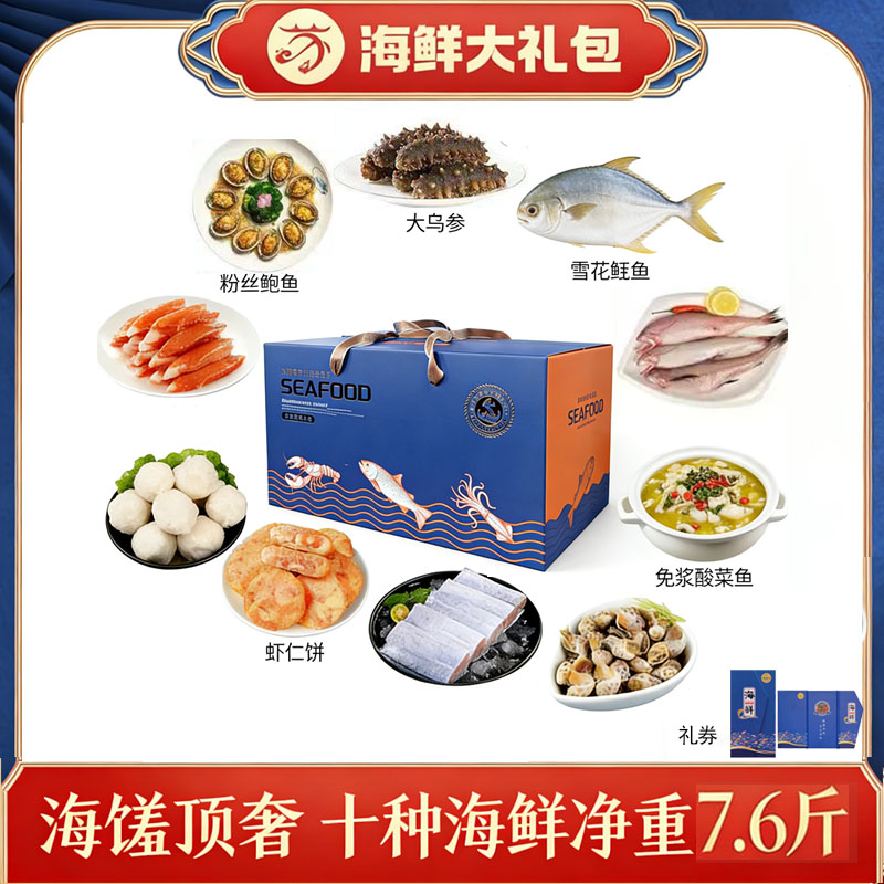 年货海鲜礼券选苏霸王,888型10道海味共3800g,体面好礼