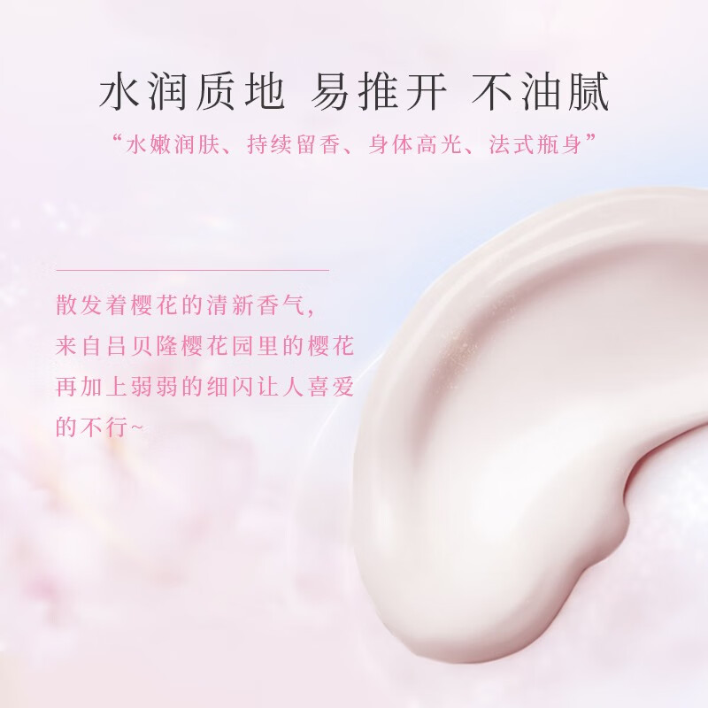 清甜花果香 + 细腻微闪,留香持久,保湿不黏腻养出嫩肌