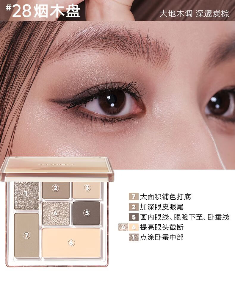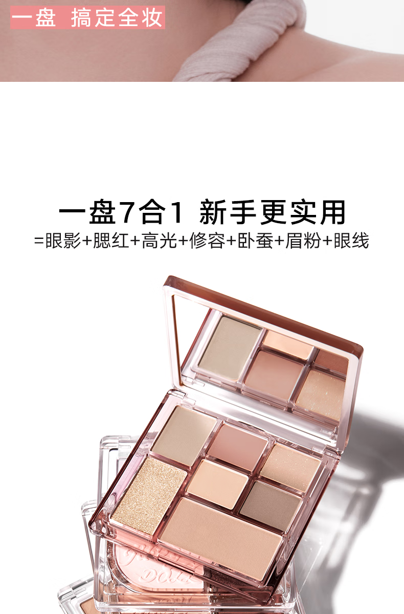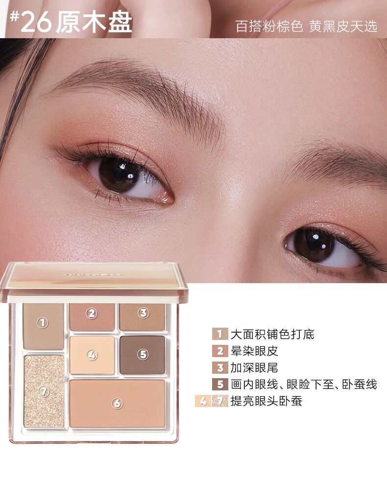 眼影+腮红+高光+修容+卧蚕+眉粉+眼线,一盘搞定全妆!