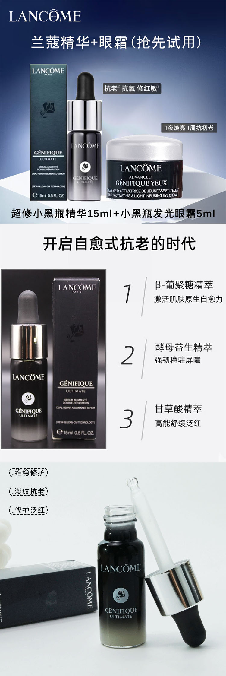 抢先体验兰蔻超修精华搭小黑瓶眼霜,双效修护焕亮眼周年轻态