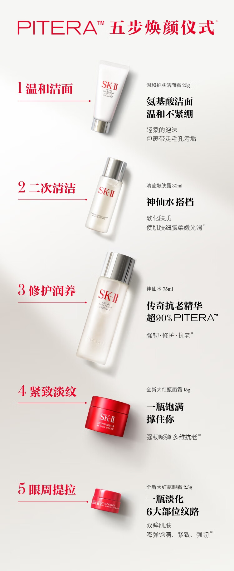神仙水75ml+清莹露30ml+洁面20g+大红瓶面霜15g+眼霜2.5g