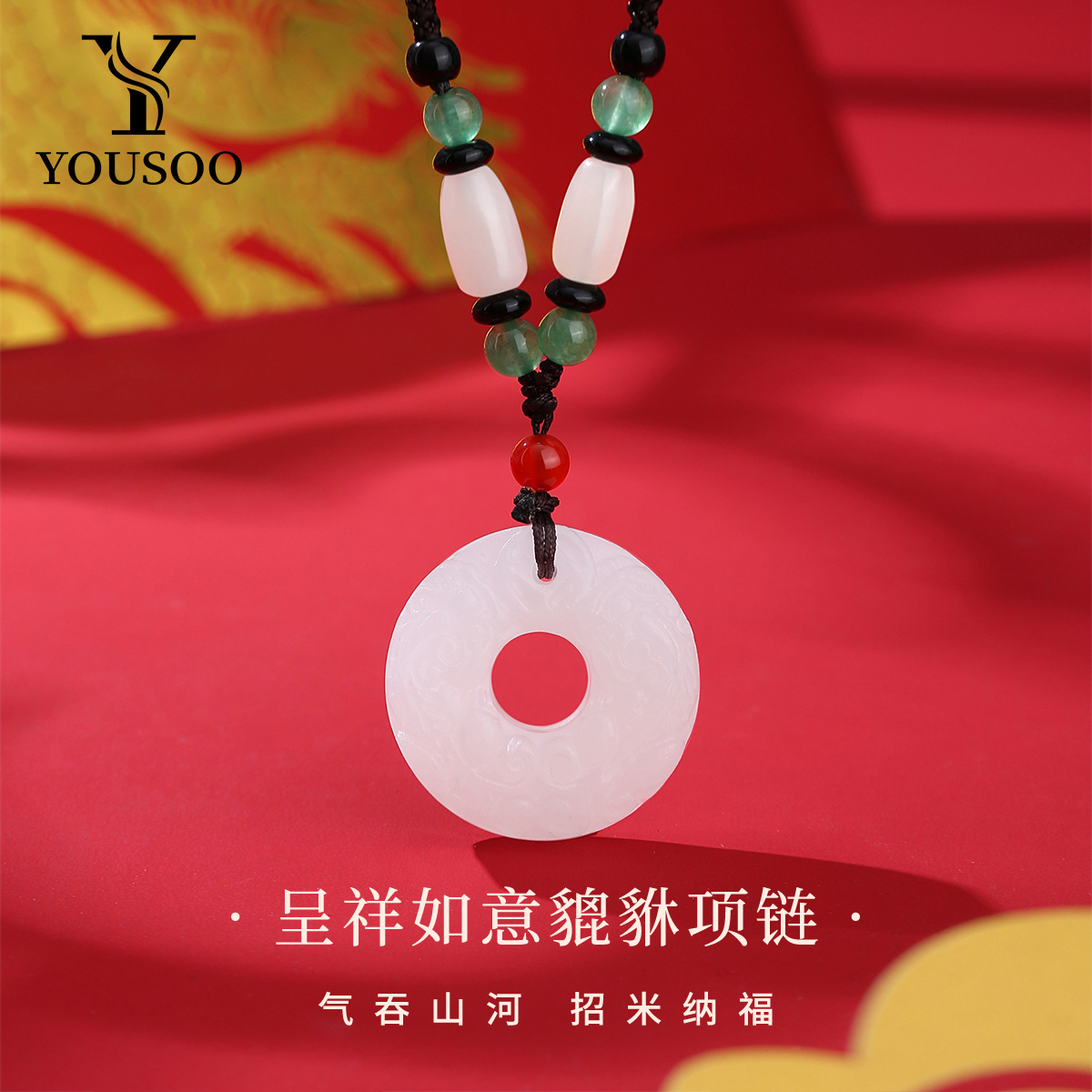 【YOUSOO】白玉貔貅平安扣项链男女祈福纳财DWM268-1